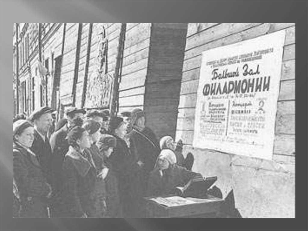 Несмотря на блокаду, в Ленинграде продолжалась культурная и образовательная жизнь. Летом 1942 года снова открылись некоторые учебные заведения, театры и кинотеатры. Всё время работали Государственная публичная библиотека и библиотека Академии наук. Вещание не прекращало Ленинградское радио и Театр музыкальной комедии.
